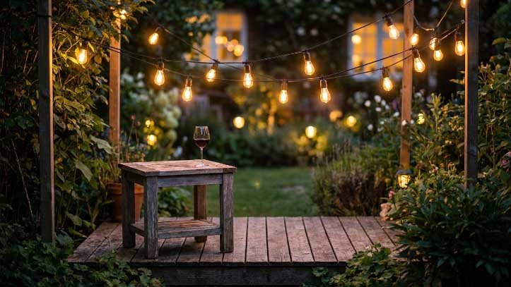 String lights are great. But they’re not the whole story. A small lantern on a side table, a solar stake or two in a planter box, a wall-mounted sconce — layered lighting at different heights makes a space feel considered and warm after dark. It’s the difference between a deck and an experience.