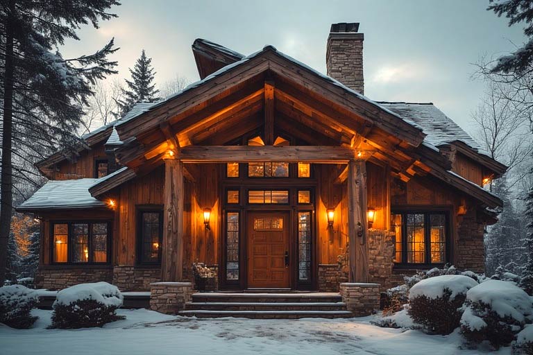 Bonus idea: A timber-framed porch or cedar beams look stunning against snow. It gives that “mountain lodge” aesthetic—minus the frostbite.