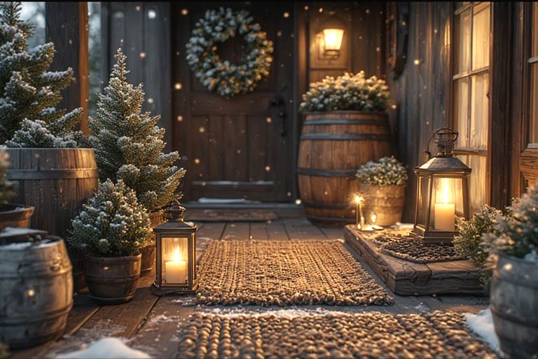 You don’t need to buy all-new stuff. I once revamped my winter porch using old crates, a plaid blanket, and leftover string lights from last year. Added a candle and a few pine branches—and it looked like a magazine cover.
