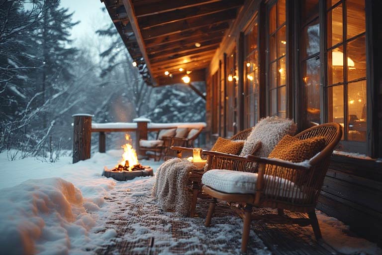 Hear me out—you can enjoy your porch in winter. The trick is layering textures and warmth.