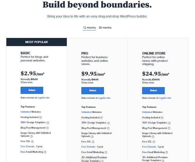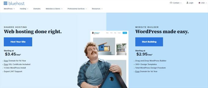 Move on to the official Bluehost website and choose the “WordPress made easy – start building” option to get a wordpress site.