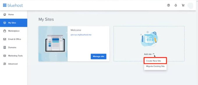 Click on “my sites” option on the left to build a blog site, click on add site – > create new site to get started